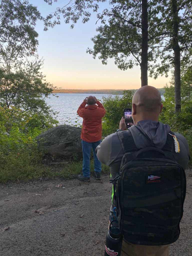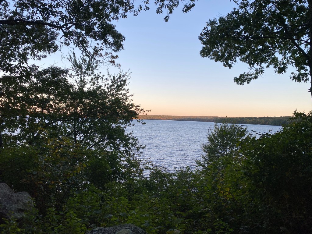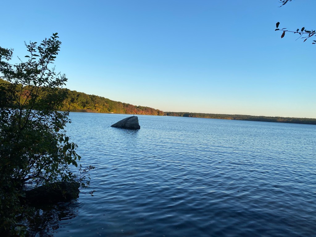As we hiked through the woods, we passed by areas where we had views of Watchaug Pond. From across the pond, we could already start seeing the leaves on the trees changing colors for the autumn. This was a sure sign that summer is ending and we are about to start entering some cooler months. The group agreed that it would be good to come back in a few weeks for leaf peeping when the colors should be at their peak.