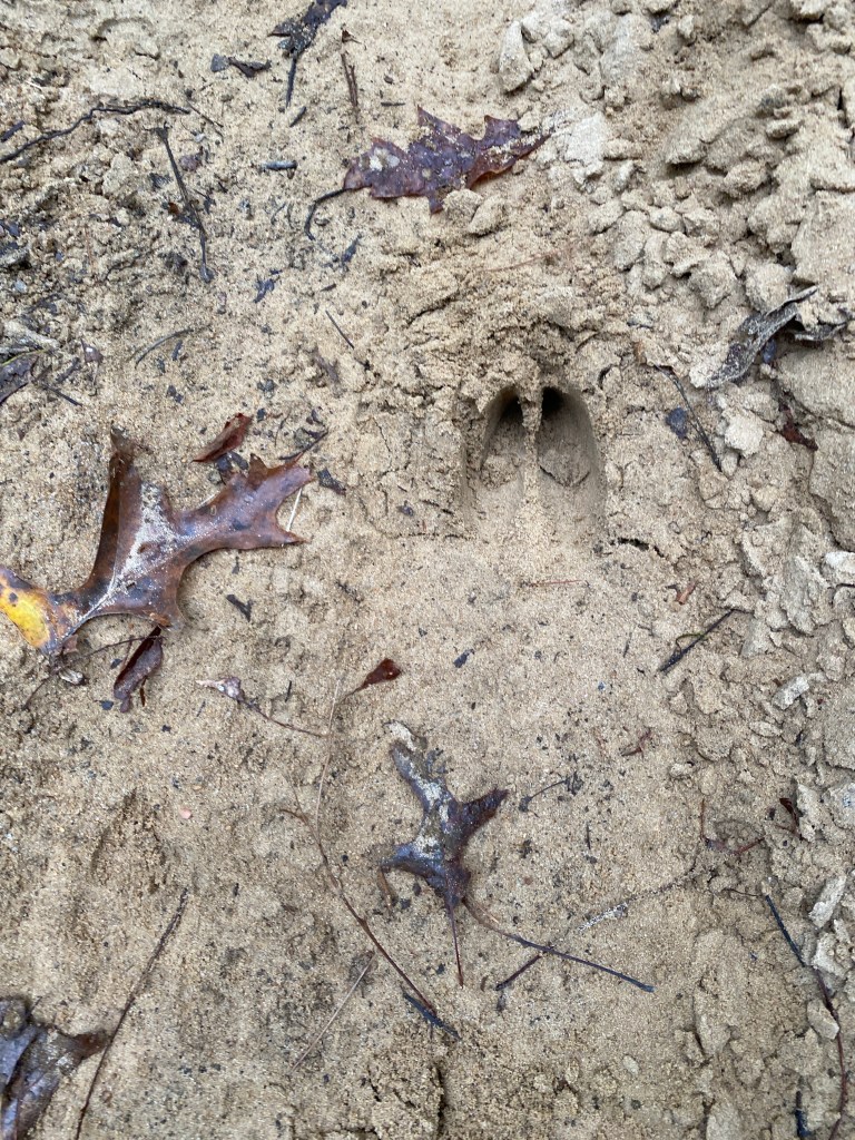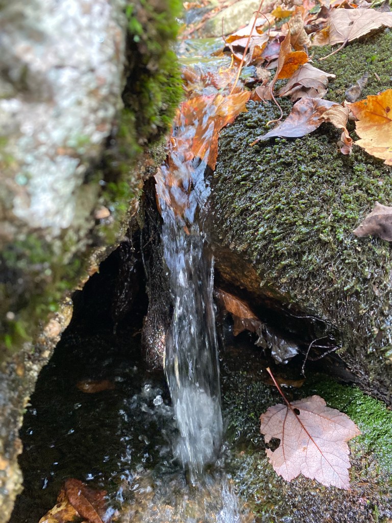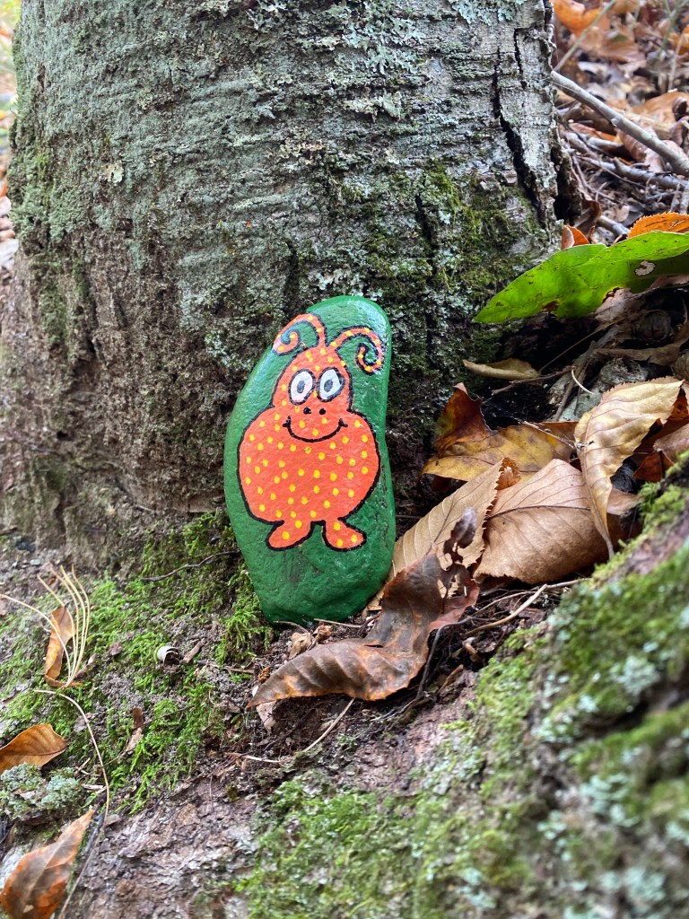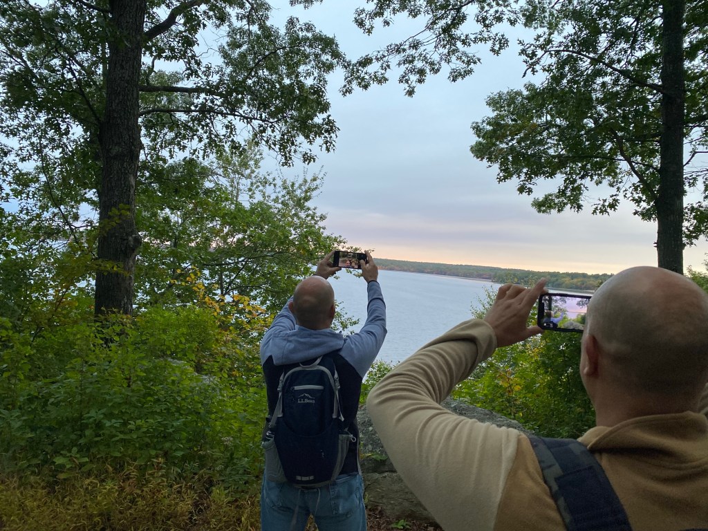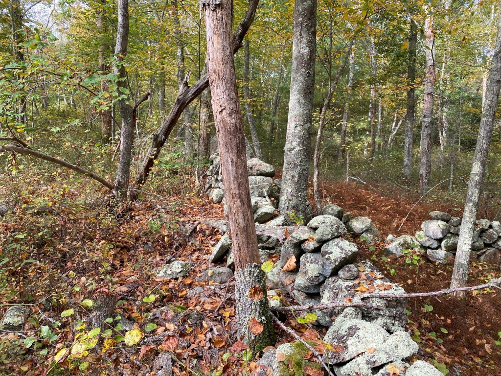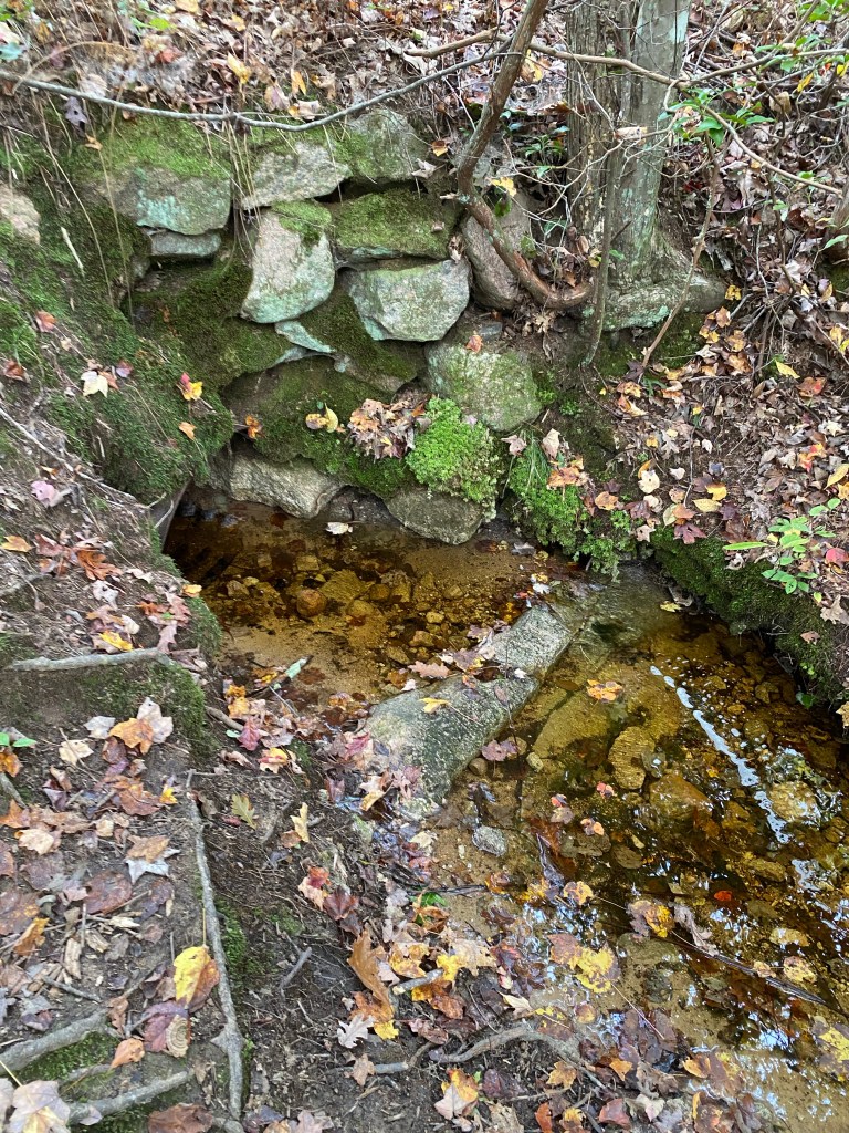As we hiked through the trails, we encountered fresh deer tracks, but surprisingly, we didn’t see any wildlife. However, we did see a painted rock, a few babbling brooks that feed into Watchaug Pond, and man-made rock walls that were likely built in the early 1800s to contain sheep or separate farm animals from crop fields. Another observation the hikers made was how quickly the color of the leaves changed between one week and the next. The picture doesn’t do it justice, but the view of the trees across the pond was breathtaking.