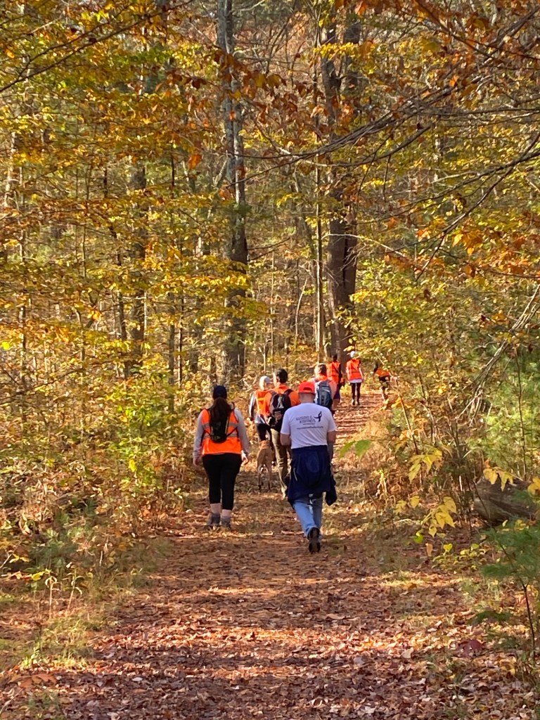Since it was hunting season, each hiker wore a safety orange vest before starting the hike. The group set off at 7:00am and hiked the easy to moderate walking trails. Along the way, we encountered several hunters. We wondered if the hunters were thankful or frustrated with hikes passing through while they were hunting. Our chatter and heavy footsteps were were either helping to drive the deer into the woods where they were more likely to be in range or they felt we were scaring them off. After hearing several gun shots and proof at least one hunter was successful, we assumed it was the former.