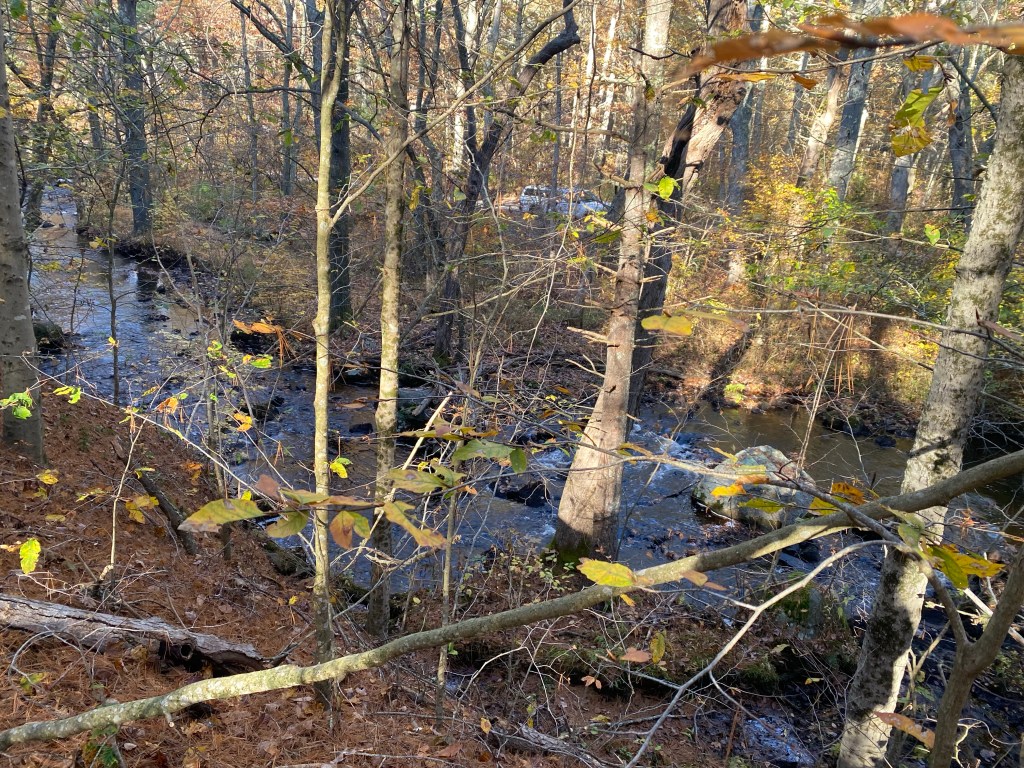 As seen in the GaiaGPS trail map, the hike consisted of two loops, totaling 6 miles. For the most part, the trails were wide and easily passable making it an easy hike. We came across several small streams with bridges that allowed easy crossing. However, in some areas, we had to test our parkour skills jumping to rocks or large tree branches that lay across the waterways. At one point, we came across a dam where the water on one side was at the top of a small bridge. It was difficult to see how deep the water was, and one of our hikers, Storm, found out the hard way when he slipped off the bridge and into the water! Wallstreet was a split second away from jumping in when Storm got his footing and was able to crawl out of the knee deep water (shoulder height for Storm) and shake it off.