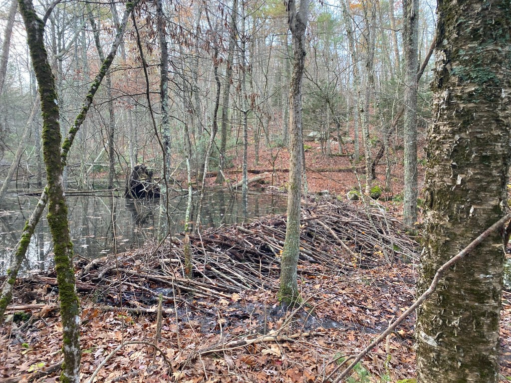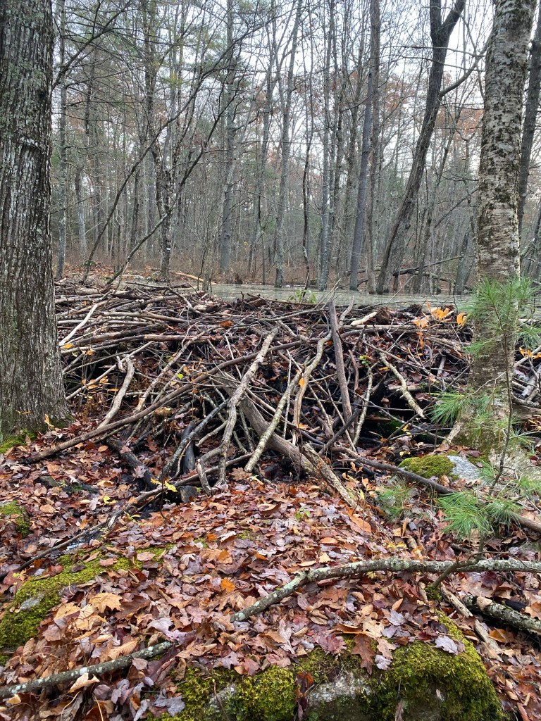 As we traversed the North-South Trail, we were awestruck by the sight of one of the largest beaver dams we had ever seen. Spanning an impressive 50-75 feet and towering approximately 4 feet high, this structure stood as a testament to the ingenuity and industriousness of beavers. The sheer volume of branches used to construct the dam, evident from the photographs, exemplified the beavers’ remarkable ability to manipulate their environment.