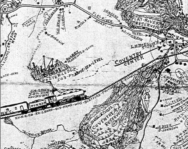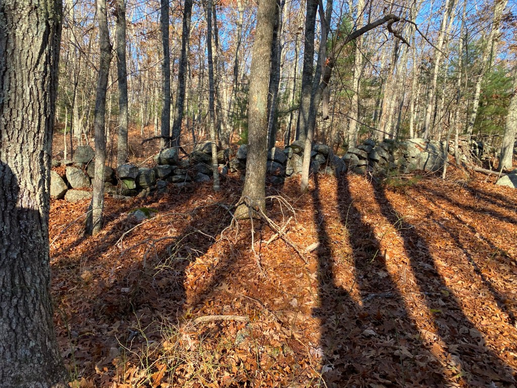 The history of the Beaudoin Conservation Area is rich and varied. From the late 1800s to as late as the 1960s, the area changed owners several times, but it was always a quarry. Originally known as Foster Ledge Quarry, it was opened by Horace Foster in 1862. The name later changed to Marriott & Sons Quarry before eventually closing. The quarry provided granite to build homes, bridges, and other structures in the region. With the quarry being located close to the Hartford, Providence, and Fishkill Railroad made it easy to ship granite to where it was needed. Remains of the quarry can still be seen on the trails with cellar holes, stone walls, and grout piles. A grout pile are the unused pieces of stone that are chipped off as the stone is being shaped.