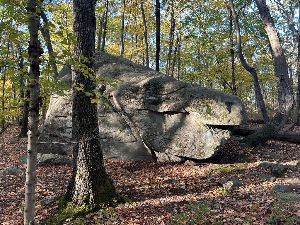 There are many granite boulder outcrops along the trail and many of them creatively named, such as Ship Rock, Bear Hug Boulder, and Buddy Boulder. ‘Case of Salami’ noted one of them looked like a sleeping dinosaur – can you guess which one?
