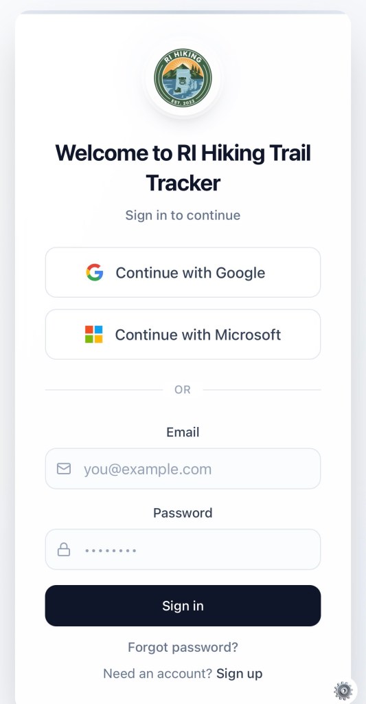 The RI Hiking Trail Tracker® app lets you record your personal hikes by capturing your route, pace, elevation, and optional details like temperature and weather. These metrics are converted into a points system, designed to gamify your hikes, so that more challenging conditions earn you more points and a little extra bragging rights among friends.