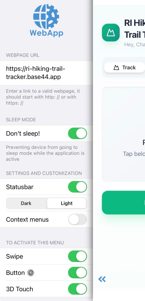 - Set the URL to Set WEBPAGE URL to https://ri-hiking-trail-tracker.base44.app/ and apply